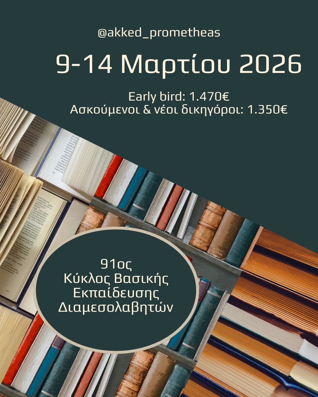 91ος Κύκλος Βασικής Εκπαίδευσης (Δια ζώσης 9, 10, 11, 12, 13 &14 Μαρτίου 2026)